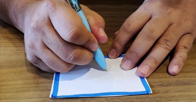 と矢次早に、催促されるから何のことだろうと、ゆっくり耳を傾けると、以前から別の職員に毎日、青い枠で囲った手作りメモ用紙を作ってもらっては、それに絵を描いてもらうのを見るのが毎日のルーティンになっているのだそう。